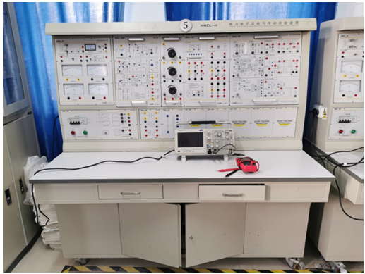 4、电力电子技术实验平台 实验平台功能:电力电子技术实验平台主要针对电气工程专业学生所学的电力电子技术课程,学生通过本实验平台可以进行锯齿波同步移相触发电路,单相桥式、三相桥式整流电路,直流斩波电路和单相逆变电路的调试,并熟练掌握使用示波器测试电路关键波形的方法。 实验平台主要设备: NMCL-Ⅲ型电力电子及电气传动实验台,NMCL-05E实验挂箱,NMCL-33实验挂箱,NMCL-16实验挂箱,NMEL-03实验挂箱,双踪示波器。 实验平台开设实验项目: 1) 锯齿波同步移相触发电路、单相桥式全控整流电路实验 综合 2) 三相桥式全控整流电路实验 综合 3) 直流斩波电路实验 综合 4) 单相逆变电路实验 综合 实验平台照片: